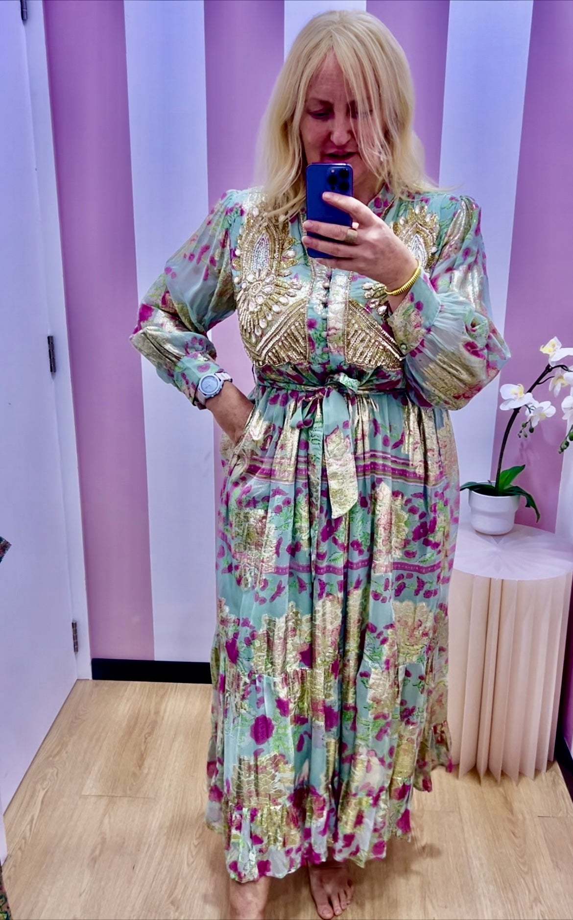 Jacquard chiffon lined freesize dress